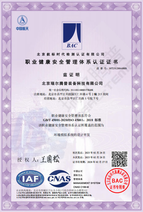 北京瑞尔腾普装备科技有限公司,国家级高新技术企业和专精特新企业。公司前身为 2010 年成立的北京瑞尔腾普科技有限公司,2020年为深化产业布局,由原公司联合骨干员工持股平台共同投资成立北京瑞尔腾普装备科技有限公司,承接原公司全部人员与业务,聚焦空间环境模拟系统的研发与制造,在高精度温度控制和真空度控制解决方案领域具备深厚技术沉淀与创新能力。